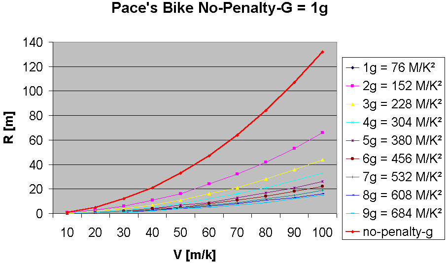 | Pace's Bike - A = 19 M/K^2 | bis 100 M/K | ||