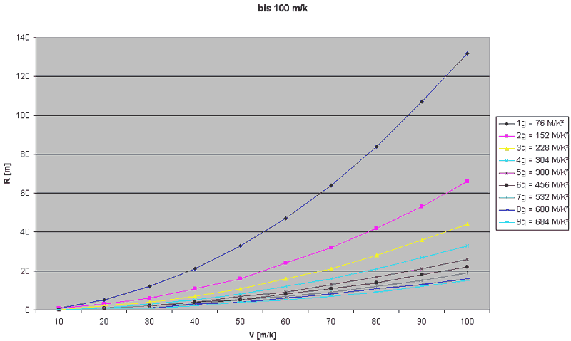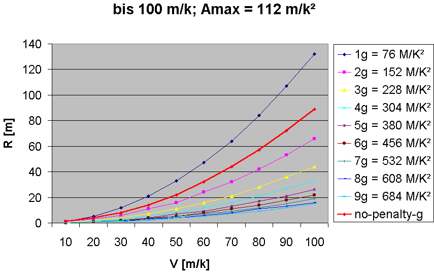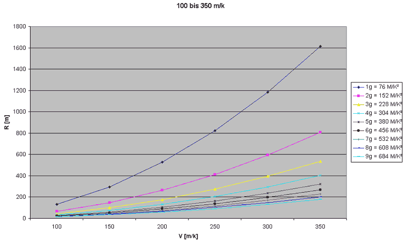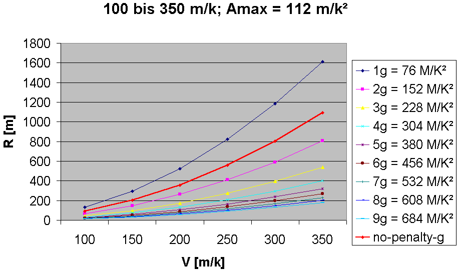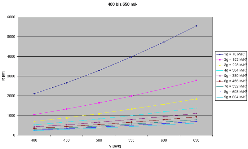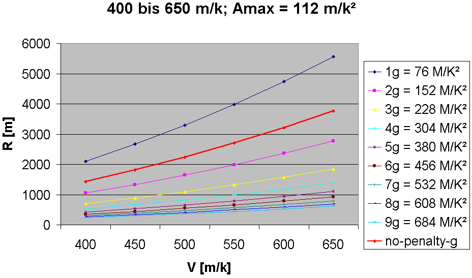 | mod. Ares TR-55E - A = 28 M/K^2 | bis 100 M/K | 100 bis 350 M/K | 400 bis 650 M/K (theoretisch) |